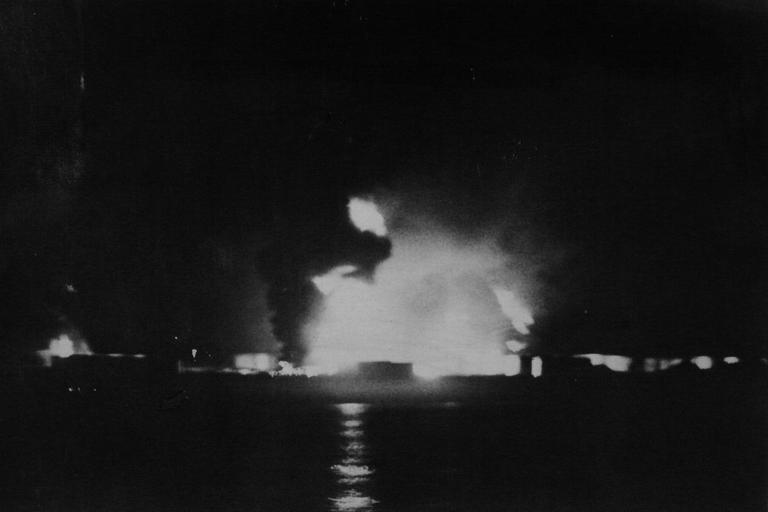 Keywords: Baniasfmkesh.jpg en The Banyas oil terminal in Syria after being ignited with 76 mm shells from Israeli Saar boats own קודקוד צהוב 11/10/73 Cc-zero Yom Kippur War Operations of the Israeli Navy