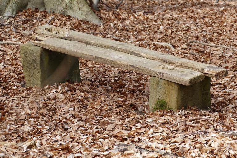 Keywords: bank forest nature old bench loneliness bank seat idyll leaves