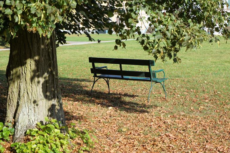 Keywords: bank park bench park rest tree sit recovery seat nature autumn leaves relax castle calden wilhelmsthal green area