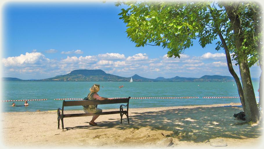 Keywords: bank woman person hungary lake balaton balaton water beach rest sit outlook view