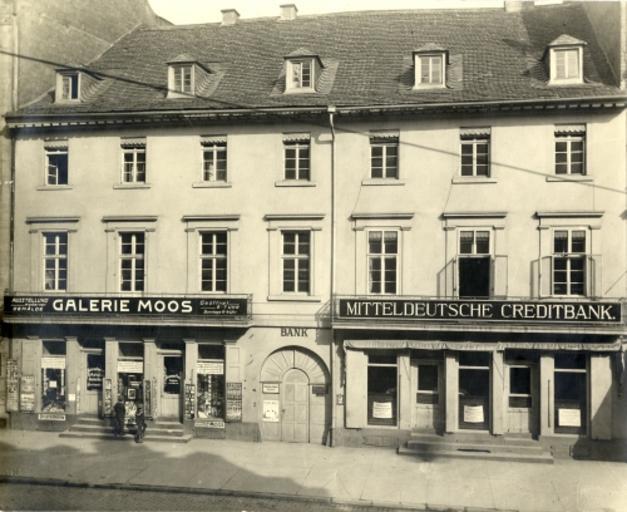 Keywords: Bankhaus Seeligmann StA KA 8 PBS XIVe 104.jpg en Alfred Seeligmann's bank in Karlsruhe Kaiserstrasse 96 in 1916 when it was taken over by Mitteldeutsche Kreditbank Posters in the shop windows say Draw War Bonds now The lefthand side of the building had been let to the Moos family renowned art dealers of Karlsruhe Both Seeligmann and Moos were aryanized by the Nazis i e robbed and driven out of the country Some members of their families were murdered in the Shoah Stadtarchiv Karlsruhe Author 1916 PD-old Aryanization Banks in Karlsruhe Kaiserstraße Karlsruhe History of Karlsruhe |