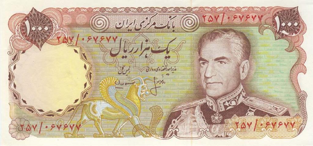 Keywords: Banknote of second Pahlavi - 1000 rials (front).jpg en Banknote of second Pahlavi - 1000 rials front banknote of central bank of Iran 2012-02-02 own Iran Persian Gulf Forever cc-zero Uploaded with UploadWizard Banknotes of Iran Mohammad Reza Pahlavi era 100 Toman 1000 Rial banknotes |