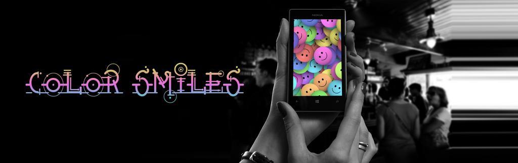 Keywords: banner header hand color colorful keep mobile phone smartphone display monitor smile smiley emoticon face smilies happy joy laugh friendly emotion feelings