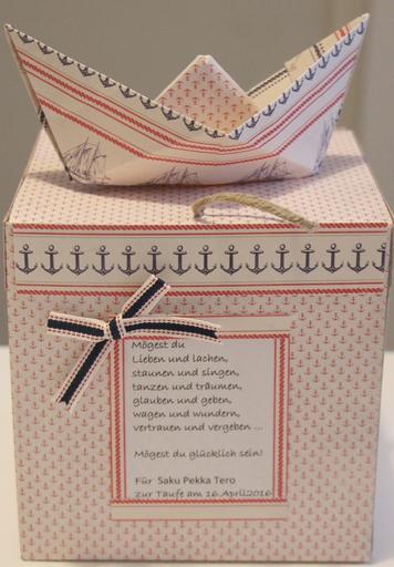 Keywords: baptism maritime paper ship boot gift packaging