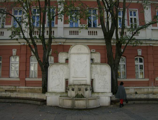 Keywords: BAPU Drinking fountain.jpg en BAPU Drinking fountain Pleven bg Чешма п ед Д аматично-куклен театъ Иван Радоев в Плевен издигната в чест на 100-годишнината от основаването на БЗ С own Izvora 2010-11-29 Cc-zero Drinking fountains in Bulgaria Fountains in Pleven Ivan Radoev Dramatic Theatre Memorial fountains in Bulgaria Puppetry in Bulgaria