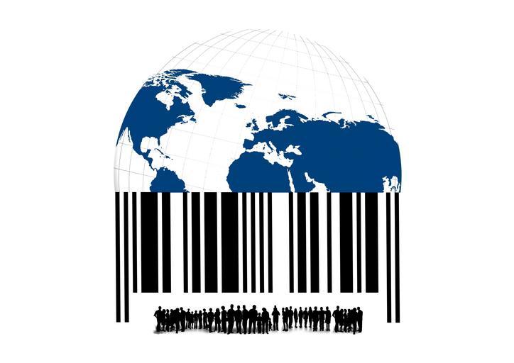 Keywords: bar code barcode scan lines goods earth globe world graphic human group of people group population humanity