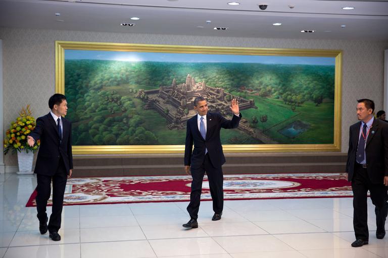 Keywords: Barack Obama arrives at Peace Palace in Phnom Penh.jpg Barack Obama in Cambodia ” walking past a painting of the Angkor Wat temple as he arrives at the Peace Palace in Phnom Penh On 19 November 2012 2012-11-19 06 16 09 http //www flickr com/photos/whitehouse/8247637331 White House P111912PS-1859 Pete Souza DEFAULTSORT 20121119061609 PD-USGov Barack Obama in Cambodia 2012 Peace Palace Phnom Penh Peace Palace Angkor Wat ¢ Photographs by Pete Souza Taken with Canon EOS 5D Mark III Uploaded by O'Dea Uploaded with UploadWizard |