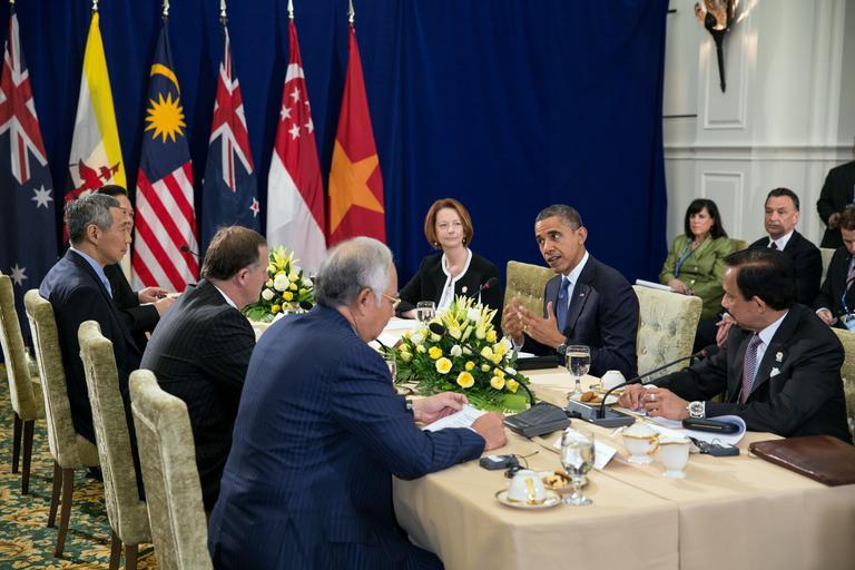| Keywords: Barack Obama at ASEAN Summit 2012.jpg Barack Obama attends the Trans-Pacific Partnership TPP meeting at the ASEAN Summit at Peace Palace in Phnom Penh on 20 November 2012 Taking part in the meeting clockwise from the President are the Sultan of Brunei Hassanal Bolkiah ; Prime Minister Najib Razak Mohammed Najib Abdul Razak of Malaysia; Prime Minister John Key of New Zealand; Prime Minister Lee Hsien Loong of Singapore; Prime Minister Nguyen Tan Dung of Vietnam; and Prime Minister Julia Gillard of Australia 2012-11-19 21 37 54 http //www flickr com/photos/whitehouse/8247637207 White House P112012PS-0130 Pete Souza DEFAULTSORT 20121119213754 PD-USGov Barack Obama in Cambodia 2012 Photographs by Pete Souza Taken with Canon EOS 5D Mark III Uploaded by O'Dea Uploaded with UploadWizard Hassanal Bolkiah Najib Tun Razak John Key Lee Hsien Loong with world leaders Nguyễn Tấn Dũng Julia Gillard |