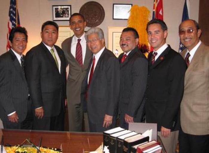 | Keywords: Barack Obama, Daniel Akaka and Hawaii constituents.jpg en Senator Daniel Akaka and Senator Barack Obama D-IL pose with members of the Hawaii State Legislature and local health care leaders before a meeting in Akaka's Senate office 2007-07-31 http //akaka senate gov/photos cfm method gallery view id aea0e484-3860-4d23-af9c-4ccbd913c7a9 page 1 Office of United States Senator Daniel Akaka D-Hawaii PD-USGov Uploaded with UploadWizard Daniel Akaka Barack Obama in 2007 20070731 | ||||