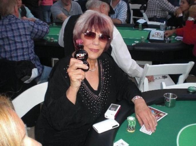 | Keywords: Barbara Enright with a bottle of Pom.jpg en Barbara Enright poker player taken Oct 3 2009 during Monte Carlo Night an annual charity poker tournament held at the Northridge California estate of Nancy Cartwright the cartoon voice of Bart Simpson photosubmission wikimedia org Max Shapiro subject's husband PermissionOTRS 2010070310008044 Barbara Enright Max Shapiro |