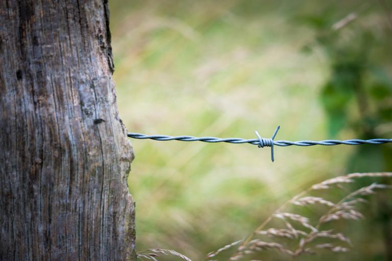 Keywords: barbed wire fence pile fence post wire pasture meadow post demarcation pasture fence metal wooden posts