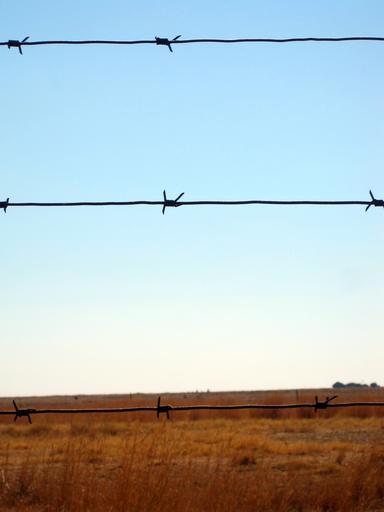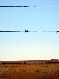 Keywords: barbed wire wire fence barbed sharp straight taught secure veld sky