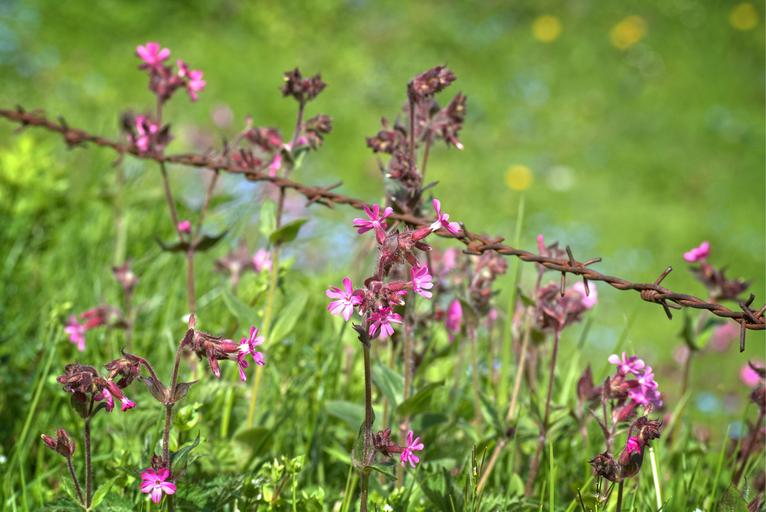 Keywords: barbed wire wire flower meadow nature blossom bloom