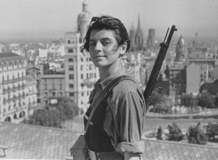 | Keywords: gerda taro robert capa blackandwhite people monochrome black and white Marina Ginestà (1919-2014) was the last surviving French veteran of the Spanish Civil War. As a 17-year-old member of Spain’s Unified Socialist Youth, this picture was taken on July 21, 1936 by Juan Guzmán at the start of the conflict, and was to become one of the most famous images of the war. She looks sideways into the lens with a wry smile, a rifle casually slung over her shoulder while the wind whips strands of hair over her fine cheekbones. Gerda Taro (vero nome Gerta Pohorylle) ebrea, comunista, esule tedesca di origine polacca, fotografa di guerra accanto al compagno Robert Capa (vero nome Endre Ernő Friedmann) ebreo, comunista, esule ungherese. Lo pseudonimo Robert Capa fu inventato insieme dalla coppia a Parigi nel 1936 (avevano 22 anni lui e 24 lei), ed all'inizio fu usato per vendere le foto scattate da entrambi indistintamente. Successivamente Endre userà in esclusiva lo pseudonimo Robert Capa mentre Gerta adotterà quello di Gerda Taro (si noti anche il cambio del nome da Gerta a Gerda). Nel 1937 insieme fotografano la guerra civile spagnola, dove Gerda troverà la morte. Aveva 26 anni. Prima fotoreporter donna morta sul campo. Sopravvisse un giorno intero con l'addome maciullato dai cingoli di un carro armato, pienamente cosciente della sua morte inevitabile, si preoccupava unicamente che le sue fotocamere (Leica II e Leica III) che le aveva regalato Endre, non si fossero rotte. Marina Ginestà (1919-2014) was the last surviving French veteran of the Spanish Civil War. As a 17-year-old member of Spain’s Unified Socialist Youth, this picture was taken on July 21, 1936 by Juan Guzmán at the start of the conflict, and was to become one of the most famous images of the war. She looks sideways into the lens with a wry smile, a rifle casually slung over her shoulder while the wind whips strands of hair over her fine cheekbones. Gerda Taro (vero nome Gerta Pohorylle) ebrea, comunista, esule tedesca di origine polacca, fotografa di guerra accanto al compagno Robert Capa (vero nome Endre Ernő Friedmann) ebreo, comunista, esule ungherese. Lo pseudonimo Robert Capa fu inventato insieme dalla coppia a Parigi nel 1936 (avevano 22 anni lui e 24 lei), ed all'inizio fu usato per vendere le foto scattate da entrambi indistintamente. Successivamente Endre userà in esclusiva lo pseudonimo Robert Capa mentre Gerta adotterà quello di Gerda Taro (si noti anche il cambio del nome da Gerta a Gerda). Nel 1937 insieme fotografano la guerra civile spagnola, dove Gerda troverà la morte. Aveva 26 anni. Prima fotoreporter donna morta sul campo. Sopravvisse un giorno intero con l'addome maciullato dai cingoli di un carro armato, pienamente cosciente della sua morte inevitabile, si preoccupava unicamente che le sue fotocamere (Leica II e Leica III) che le aveva regalato Endre, non si fossero rotte. |