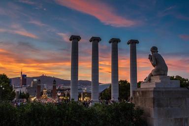 Keywords: barcelona montjuic plaza españa sunset