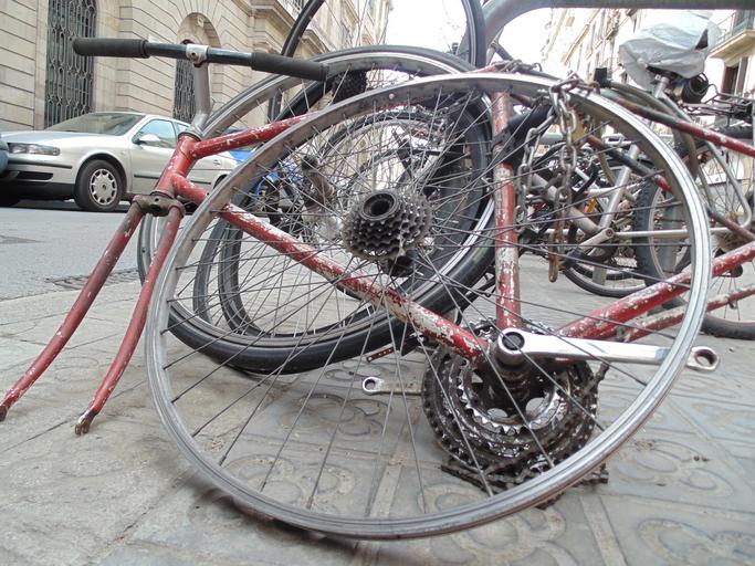 Keywords: barcelona street city bicycle old abandoned via urban broken transport building oxide rusty impaired metal radios wheel pine nuts cycling handlebar chuck