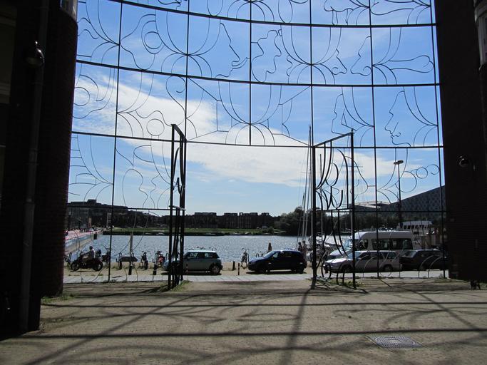 Keywords: Barcelonaplein ertshaven sporenburg.jpg Modern architecture in the Eastern Docklands of Amsterdam The Barcelonaplein apartment building on KNSM-eiland 1993 designed by Belgian architect Bruno Albert Beyond the gate the Levantkade quay and Ertshaven harbour can be seen and beyond that Sporenburg island with the apartment building The Whale on the far right Note the temporary pontoon bridge on the far left constructed for the SAIL 2010 event own 2010-08-20 Jvhertum Barcelonaplein Gates in Amsterdam The Whale |