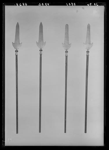 Keywords: Bardisan för drottning Kristinas drabanter m: 1646, tillverkad vid Jäders bruk - Livrustkammaren - 17652.tif Klinga med etsad och punsad dekor nästan helt bortnött på ena sidan årtalet 1646 synligt på bägge sidor liksom S i namnchiffer på ena sidan På den andra sidan är dekoren ifylld med tunna horisontella linjer riksvapnet omgivet av streckbård Nedtill på klingan en otydlig punsad dekor <br/><br/>Holk l 100 mm med tydlig etsad och punsad rankdekor <br/><br/>Brunmålat skaft av furu brunmålade skenor och skoning av stål 115 mm nedanför holken ett genomgående hål diam 10 mm runt kanterna saknas flisor original caption 1646 size mm 2075 size mm 500 klinga size mm 185 LRK Christina drottning av Sverige 1966 place of origin original filename LN_B02432_005312 42278 inventory number LRK 5670 17652 CC0 Bardisan för drottning Kristinas drabanter m 1646 tillverkad vid Jäders bruk - Livrustkammaren - 17652-negative tif <gallery caption Different images of same object > File Bardisan för drottning Kristinas drabanter m 1646 tillverkad vid Jäders bruk - Livrustkammaren - 34789 tif </gallery> Partisan weapon images from Livrustkammaren Media contributed by LSH dim-with multiple size templates Media contributed by LSH 2013-10 |