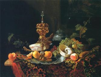 | Keywords: Barend van der Meer 001.jpg Artwork creator Barend van der Meer technique oil canvas cm 85 109 private collection object history exhibition history Vente publique Paris 1994 03 29 credit line still-life accession number PD-old-100 Barend van der Meer Nature morte aux fruits et au pokal 17th-century still life paintings of fruits Still life paintings of tableware Nautilus in art Paintings of knives Rummers in paintings Paintings of carpets Oil still life paintings Paintings of grapes 17th-century oil on canvas paintings 17th-century still life paintings in private collections Paintings of silverware Chalices in art 17th-century paintings in unidentified private collections 17th-century paintings location missing |