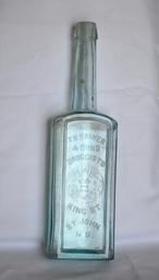 Keywords: new brunswick newbrunswick bottle mortar & pestel mortarpestel jason pictorial saint john saintjohn druggist medicine bottle medicinebottle old glass oldglass canadian bottles canadianbottles aqua 10 3/4"!. mortar & pestle surrounded by a wreath. Nice long neck. Hard to find the older druggist bottles in this large of size. Nice bottle! aqua 10 3/4"!. mortar & pestle surrounded by a wreath. Nice long neck. Hard to find the older druggist bottles in this large of size. Nice bottle!