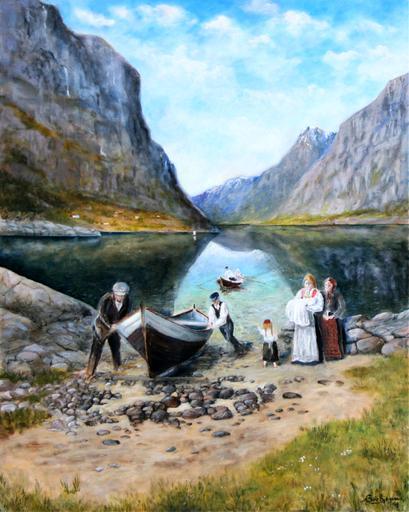Keywords: Barnedåpen.png oil canvas cm 90 120 object history credit line en Picture made for the exhibition at Karmøy Norway Nov 2009<br>Other pictures may be seen at artwanted com/gbjoergum accession number Geir Bjørgum 2009-11-26 PD-Art Paintings in Norway Geir Bjørgum Paintings of baptism Oil on canvas paintings in Norway Attribution