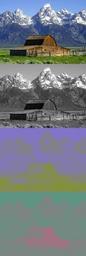 Keywords: Barns grand tetons YCbCr separation.jpg This takes an image Image Barns grand tetons jpg and displays the Y Cb and Cr elements of it Note that the Y image is essentailly a greyscale copy of the main image; that the white snow is represented as a middle value in both Cb and Cr; that the brown barn is represented by strong Cb and strong Cr; that the green grass is represented by strong Cb and weak Cr; and that the blue sky is represented by weak Cb and weak Cr The murkiness of the Cb and Cr elements to the human eye demonstrate why many image compression codecs downsample colour; details in Y are much more visible than in Cb or Cr Based on the public domain photo Image Barns grand tetons jpg Code above and resulting output by Mike1024 Uploaded 2006-12-26 Mike1024 Generator code In MATLAB <pre>RGBimage imread 'barns_grand_tetons jpg' ; height width depth size RGBimage ; YCbCrimage RGB2YCbCr RGBimage ; If you don't have the right version/toolkit this function might not be availiable Luckily it's easy to implement ourselves Drop me Mike1024 a message and I'll send you my code to do it Newer versions of matlab need outputimage zeros height 4 width depth 'uint8' ; outputimage uint8 zeros height 4 width depth ; for w 1 width for h 1 height outputimage h w 1 YCbCrimage h w 1 ; Copy Y Cb and Cr for normal image outputimage h w 2 YCbCrimage h w 2 ; outputimage h w 3 YCbCrimage h w 3 ; outputimage h+height w 1 YCbCrimage h w 1 ; Copy Y only for first component outputimage h+height w 2 128; outputimage h+height w 3 128; outputimage h+ 2 height w 2 YCbCrimage h w 2 ; Cb only for second component outputimage h+ 2 height w 1 128; outputimage h+ 2 height w 3 128; outputimage h+ 3 height w 3 YCbCrimage h w 3 ; Cr only for third component outputimage h+ 3 height w 1 128; outputimage h+ 3 height w 2 128; end end image YCbCr2RGB outputimage ; imwrite YCbCr2RGB outputimage 'YCbCr_separation jpg' 'jpeg' ;</pre> YCbCr |