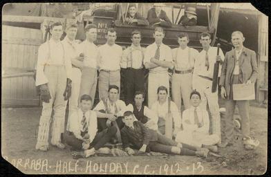 Keywords: archives state records nsw staterecordsnsw newsouthwales blackandwhite school children exercise cricket barraba monochrome black and white Title: Barraba Public School - Half Holiday Cricket Club 1912-1913 Dated: year only 31/12/1913 Digital ID: 15051_a047_000744 Rights: No known copyright restrictions www.records.nsw.gov.au/about-us/rights-and-permissions We'd love to hear from you if you use our photos/documents. Many other photos in our collection are available to view and browse on our website using Photo Investigator. Title: Barraba Public School - Half Holiday Cricket Club 1912-1913 Dated: year only 31/12/1913 Digital ID: 15051_a047_000744 Rights: No known copyright restrictions www.records.nsw.gov.au/about-us/rights-and-permissions We'd love to hear from you if you use our photos/documents. Many other photos in our collection are available to view and browse on our website using Photo Investigator.