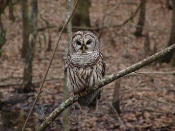 Keywords: barred owl perched bird of prey nocturnal predator eyes bird