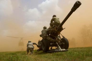 | Keywords: 1-319th 1319th 319th afar 319thafar 82nd abn divarty 82ndabndivarty airborne bart fort bragg fortbragg loyalty m119a3 m777a2 u.s. army. usarmy artillery outdoor Airborne Artillerymen, assigned to 1st Battalion, 319th Airborne Field Artillery Regiment, 82nd Airborne Division Artillery, prepare to sling load an M119A3 light howitzer to a CH-47 Chinnok during Loyalty's first Battalion Artillery Readiness test in more than a decade here on Fort Bragg, N.C. 20 April, 2016. Over five days the Paratroopers skills and resolve were put to the test conducting multiple complex fire missions during the day and night like the emergency fire mission, 3-Gun-Raid, out of traverse mission and a 3 hour schedule of fires. (Official 82nd ABN DIVARTY photo by Capt. Joe Bush/ Released) Airborne Artillerymen, assigned to 1st Battalion, 319th Airborne Field Artillery Regiment, 82nd Airborne Division Artillery, prepare to sling load an M119A3 light howitzer to a CH-47 Chinnok during Loyalty's first Battalion Artillery Readiness test in more than a decade here on Fort Bragg, N.C. 20 April, 2016. Over five days the Paratroopers skills and resolve were put to the test conducting multiple complex fire missions during the day and night like the emergency fire mission, 3-Gun-Raid, out of traverse mission and a 3 hour schedule of fires. (Official 82nd ABN DIVARTY photo by Capt. Joe Bush/ Released) |
