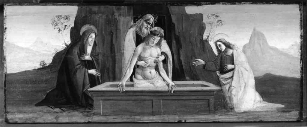 | Keywords: Bartolomeo di Giovanni - Group of Three Panels - Last Communion of St Jerome, The Man of Sorrows, The Death of St Jerome - Walters 37428 (2).jpg Walters Art Museum artwork Q18748404 Zeri Italian paintings in the Walters Art Gallery 65 102-103 ca 1500 Renaissance oil on panel Painted surface H of the Last Communion of St Jerome 7 5/16 x W 18 1/2 x D 11/16 in 18 6 x 47 x 1 7 cm ; Painted surface H of the Man of Sorrows 7 1/8 x W 18 1/8 x D 11/16 in 18 1 x 46 1 x 1 7 cm ; Painted surface H of the Death of St Jerome 7 3/16 x W 18 9/16 x D 9/16 in 18 3 x 47 1 x 1 5 cm accession number 37 428 30693 Don Marcello Massarenti Collection Rome date and mode of acquisition unknown 1881 catalogue nos 178 179 180 1897 catalogue nos 282 283 284 as Melozzo da Forlì Henry Walters city Baltimore Walters Art Museum Henry Walters Acquired by Henry Walters with the Massarenti Collection 1902 place of origin Florence Italy <gallery> File Bartolomeo di Giovanni - Group of Three Panels - Last Communion of St Jerome The Man of Sorrows The Death of St Jerome - Walters 37428 jpg </gallery> Walters Art Museum license 2D Italian Renaissance paintings in the Walters Art Museum Bartolomeo di Giovanni Media contributed by the Walters Art Museum needs category review |