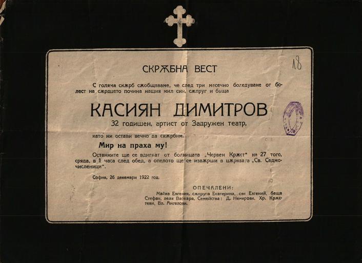 Keywords: BASA-1154K-1-252-18-Kasiyan Dimitrov Obuituary.JPG ек олог на Касиян Димит ов Kasiyan Dimitrov Obuituary Կասիյան Դիմիտ ովի մահախոսականը 1922-12-26 author ЦДА 1154K Иван Попов 1 252 18 credit line exhibition history BASA Спасими <span class signature-talk >talk</span> 2015-04-17 other versions Anonymous-EU Obituaries of Bulgaria Kasiyan Dimitrov 1922 obituaries |