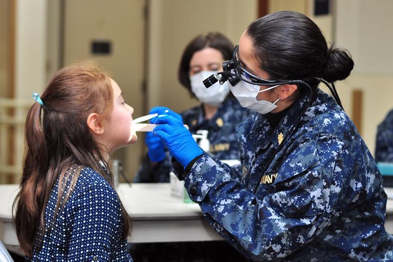 | Keywords: Basic dental screening 150218-N-QK202-017.jpg  en YOKOSUKA Japan- Lt Danielle Burkowitz a dentist assigned to U S Naval Hospital Yokosuka conducts a basic dental screening on a child at The Sullivan's Elementary School on board Fleet Activities Yokosuka Feb 18 The screening is part of a monthlong initiative in support of dental health month where staff members from USNH Yokosuka's dental department take their practice to schools on base to stress the importance of practicing good oral hygiene 2015-02-18 Feb 18 2015 https //www dvidshub net/image/1790173 150218-N-QK202-017 2015-02-27 12 52 YOKOSUKA JP PD-USGov-Military-Navy Fleet Activities Yokosuka Images from DoD uploaded by Fæ |