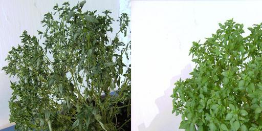 | Keywords: Basil marcida56-horz.jpg en The same basil plant Ocimum basilicum wilted at left and normal at right after irrigation Castelltallat Catalonia ca La mateixa planta d'alfàbrega Ocimum basilicum marcida a l'esquerra i recuperada a la dreta després de 24 hores després de ser regada a Castelltallat Bages own Victor M Vicente Selvas 14 /04/2011 41º 47' N 1º 38' E 800 msnm Ocimum basilicum | ||||