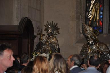 | Keywords: indoor Miracle of Blood - The church houses a vial of the blood of Saint Januarius which is brought out twice a year, on the first Saturday in May and on 19 September, when the dried blood usually liquefies. If the blood fails to liquefy, then legend has it that disaster will befall Naples We were there on this day and fortunately it did liquefy. Later that day patrons carry 45 patron saints from the Duomo to this church. Miracle of Blood - The church houses a vial of the blood of Saint Januarius which is brought out twice a year, on the first Saturday in May and on 19 September, when the dried blood usually liquefies. If the blood fails to liquefy, then legend has it that disaster will befall Naples We were there on this day and fortunately it did liquefy. Later that day patrons carry 45 patron saints from the Duomo to this church. |