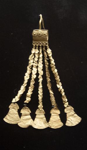 | Keywords: Basket earring, gold.jpg  Artwork Basket_earring with pendants in the shape of idols gold Institution Pushkin Museum object history Discovered by Schliemann in Troy credit line accession number 155 own photo by Szilas in the Pushkin Museum Moscow PD-old-100 Treasures from Troy in the Pushkin Museum Priam's treasure |