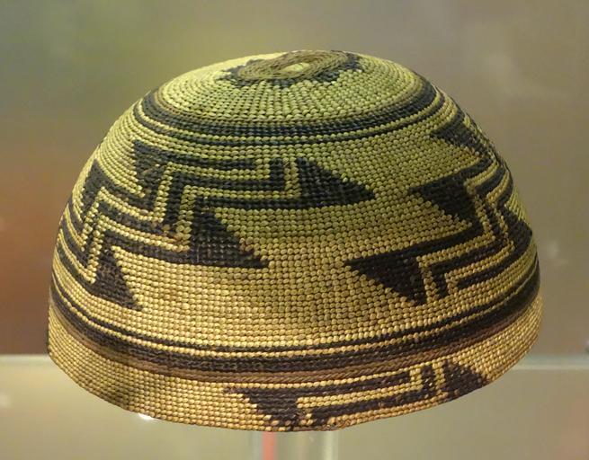 | Keywords: Basket hat, Klamath, beargrass, maidenhair fern, pine root - Oakland Museum of California - DSC05061.JPG en Exhibit in the Oakland Museum of California Oakland California USA This work is in the public domain because its maker died more than 70 years ago Photography was permitted in the museum without restriction 2013-11-15 16 35 48 own Daderot other versions cc-zero Native American baskets in the Oakland Museum of California Uploaded with UploadWizard Klamath | ||||