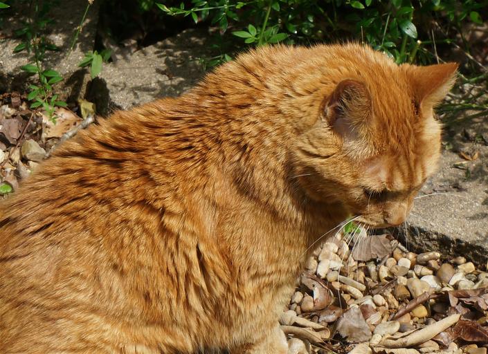 Keywords: basking orange cat cat feline orange animal garden fur nature