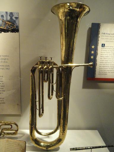 Keywords: Bass saxophone, 33rd Regiment of North Carolina Troops, 1863-1865 - North Carolina Museum of History - DSC06009.JPG Instrument identified as a bass saxophone from the 33rd Regiment of North Carolina Troops 1863-1865 Exhibit in the North Carolina Museum of History Raleigh North Carolina USA I took this photograph 2011-10-05 11 21 46 Daderot Public domain Items in the North Carolina Museum of History |