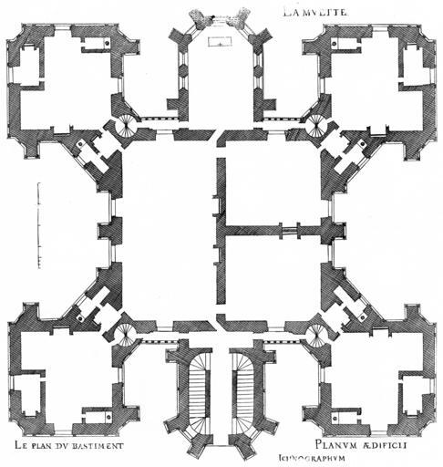MAKE A MEME View Large Image Bastiments v1 (Gregg 1972 p62) - La Muette plan.jpg Engraving from Le premier volume des plus excellents Bastiments de France by Jacques I Androuet du Cerceau plan of the Château de la Muette a former royal hunting pavilion in the Forêt ...