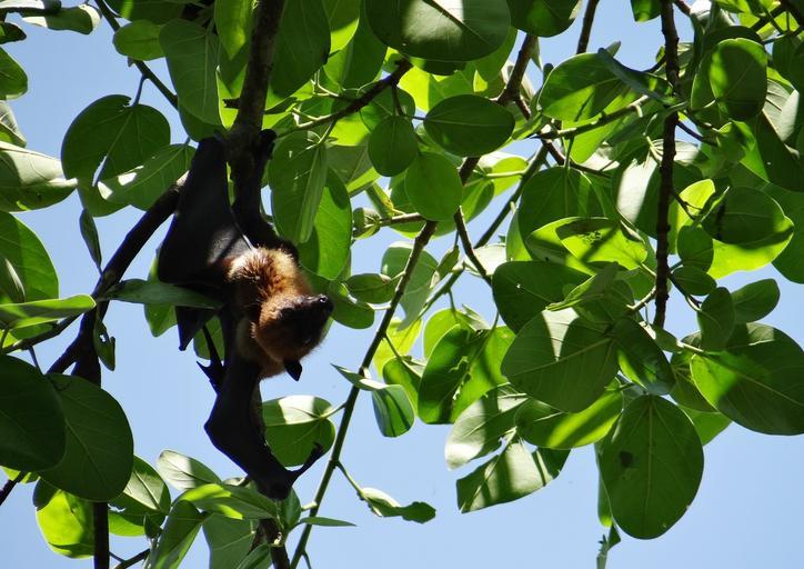 Keywords: bat flying fox animal mammal hang hanging claws branch tree fig banyan tree fauna khanapur belgaum india