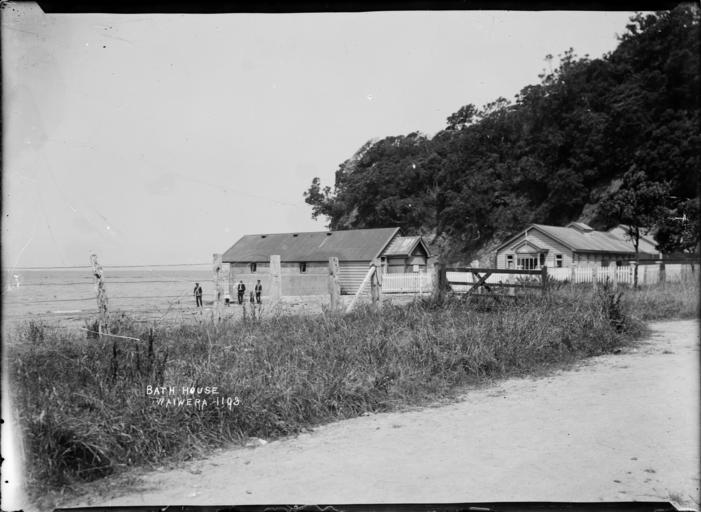 Keywords: photographer:name=william archer price photographer:name=williamarcherprice geo:country=new zealand geo:country=newzealand blackandwhite monochrome outdoor photo border black and white View of the bath houses on the beach and near the Hot Springs Hotel at Waiwera. Taken from the roadway looking south-east towards the beach, with the sea in the background. Photograph taken by William A Price in early 1900s. Inscriptions: Inscribed - Photographer's title on negative -bottom left: Bath house. Waiwera. 1193. William Archer Price lived and practised in Queen Street, Northcote, 1909-1910. Source: New Zealand Post Office directories. Quantity: 1 b&w original negative(s). Physical Description: Dry plate glass negative 4.5 x 6.5 inches Bath houses at Hot Springs Hotel, Waiwera. Price, William Archer, 1866-1948 :Collection of post card negatives. Ref: 1/2-001587-G. Alexander Turnbull Library, Wellington, New Zealand. natlib.govt.nz/records/22729290 View of the bath houses on the beach and near the Hot Springs Hotel at Waiwera. Taken from the roadway looking south-east towards the beach, with the sea in the background. Photograph taken by William A Price in early 1900s. Inscriptions: Inscribed - Photographer's title on negative -bottom left: Bath house. Waiwera. 1193. William Archer Price lived and practised in Queen Street, Northcote, 1909-1910. Source: New Zealand Post Office directories. Quantity: 1 b&w original negative(s). Physical Description: Dry plate glass negative 4.5 x 6.5 inches Bath houses at Hot Springs Hotel, Waiwera. Price, William Archer, 1866-1948 :Collection of post card negatives. Ref: 1/2-001587-G. Alexander Turnbull Library, Wellington, New Zealand. natlib.govt.nz/records/22729290