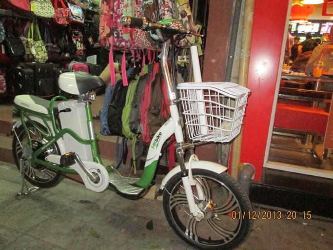 Keywords: 'Battery operated' electric cycle..JPG en Battery operated electric bicycles are very popular in Hanoi own Rudolph A Furtado Transport in Hanoi Taken with Canon PowerShot A810 Cc-zero