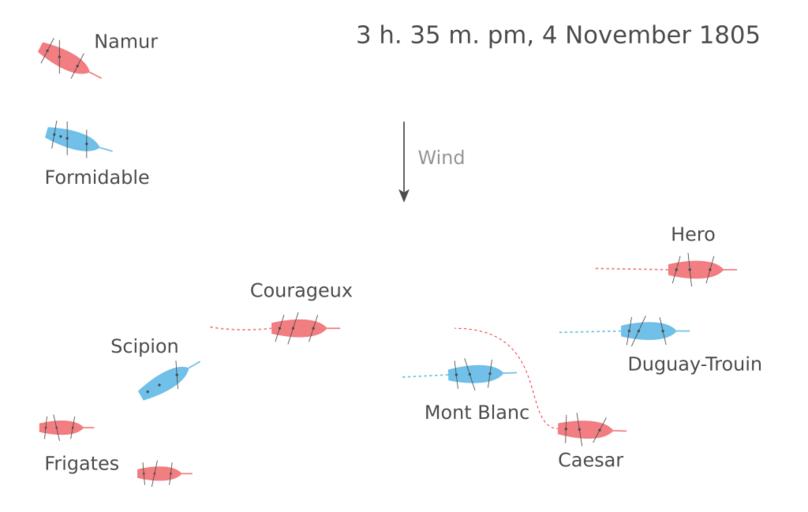 | Keywords: Battle of Cape Ortegal 3h 35m pm EN.svg en Battle of Cape Ortegal 3 h 35 m pm 4 November 1805 ru Положение б итанских и ф анцузских ко аблей в с ажении п и мысе О тегаль по состоянию на 15 35 4 нояб я 1805 года http //freepages genealogy rootsweb ancestry com/~pbtyc/Naval_History/Vol_IV/Vol_IV_P_111 htm own 2014-04-05 translate Battle of Cape Ortegal Cc-zero |