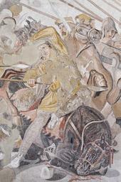 Keywords: Battle of Issus MAN Napoli Inv10020 n07.jpg So-called Alexander Mosaic Persian soldier fallen to the ground and trying not to get trampled by Alexander's horse detail of a representation of the battle of Issos Floor mosaic Roman copy after a Hellenistic original by Philoxenos of Eretria Soldat perse tombé à terre et essayant de se protéger du cheval cabré d'Alexandre détail d'une représentation de la bataille d'Issos Mosaïque de pavement romaine Mosaïque de sol copie romaine d'après un original hellénistique de Philoxénos d'Érétrie Battaglia di Isso tra Alessandro Magno e Dario III di Persia Mosaico pavimentale il cui prototipo Plinio il Vecchio ascrive al pittore Philoxenos di Eretria ~ 310 BC original opus vermiculatum ca cm 313 582 Institution Naples National Archaeological Museum First floor object history From the House of the Faun Pompeii VI 12 2 Provenance maison du Faune Pompéi VI 12 2 Trovato a Pompeii nella Casa del Fauno VI 12 2 credit line accession number Inv 10020 Marie-Lan Nguyen 2011 PD-old-100 other versions Battle of Issus mosaic from Pompeii |