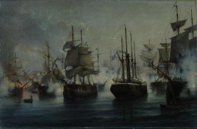 | Keywords: Battle of Itea.jpg en Battle in the bay of Salona 1827 Τρά εζα της Ελλάδος Ioannis Poulakas 1890-1900 PD-old Naval battles of the Greek War of Independence Ships of the Greek War of Independence Steamships in art Naval battles involving Greece Paintings of Ottoman naval battles 1827 in Greece |