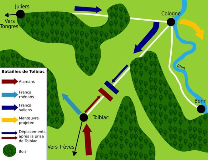 | Keywords: Battle of Tolbiac map-fr.svg en Map of the battle of Tolbiac 496 fr Carte de la bataille de Tolbiac 496 Travail personnel d'après Michel Rouche Clovis éditions Fayard 1996 p 254 Romain0 2010-03-16 Other versions/Battle of Tolbiac map Battle of Tolbiac Maps showing 5th-century history SVG maps showing history in French |