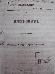 Keywords: Batur-Ubashi.jpg ru Титульный лист книги Сказание о де бен-ой атах Бату -Убаши Тюменя Аст ахань 1860 г 2012-07-28 own Rartat cc-zero Uploaded with UploadWizard Kalmykia