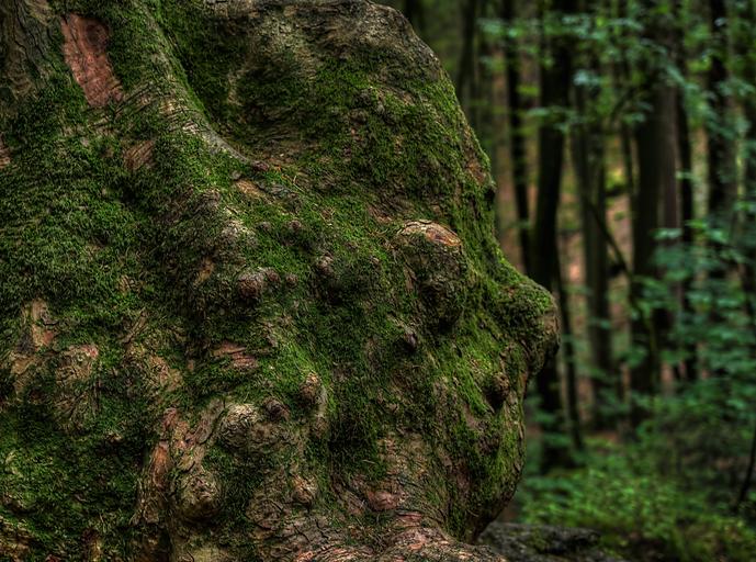 Keywords: baumstammm knarzig moss forest green bemoost nature wild fairy tale forest magic forest druid grove