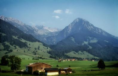 Keywords: bavaria germany landscape scenic mountains fields valley forest trees nature outside countryside houses barn farm rural allgäu rubihorn oberstdorf