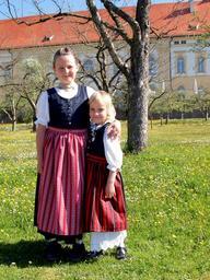 Keywords: bavarian kids girls youngster youth dirndl children human smiling person people costume dachau bavaria clothing dresses